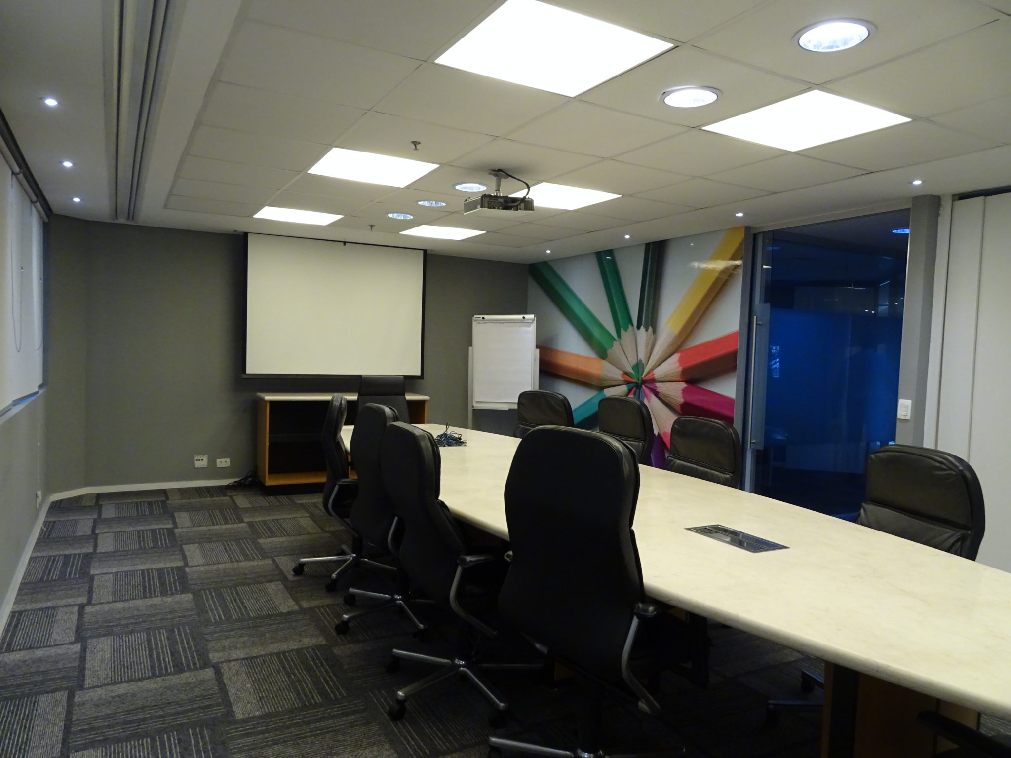 01 Sala grande 06 Salas pequenas 02 Salas de reunião pequenas 01 Sala de reunião grande c/banheiro privativo e terraço 04 Banheiros 01 Copa 07 Elevadores sendo 02 panorâmicos 08 Vagas de Garagem + estac. rotativo